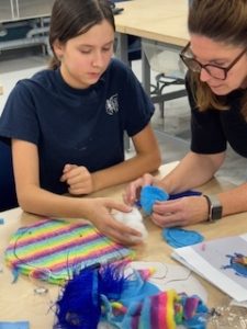 Précision, patience, apprentissage et beaucoup d’entraide pour cette étape très importante. Les petits monstres taillent les patrons des dessins réalisés par les petits du CPE. Par la suite, pour la plus part des monstres, l’utilistion d’une machine à coudre, c’est une première !!! OUFFF ! C’est pas facile mais le désir d’assayer quelque chose de nouveau est vraiment fascinant ! Voyez les monstres à l’oeuvre .